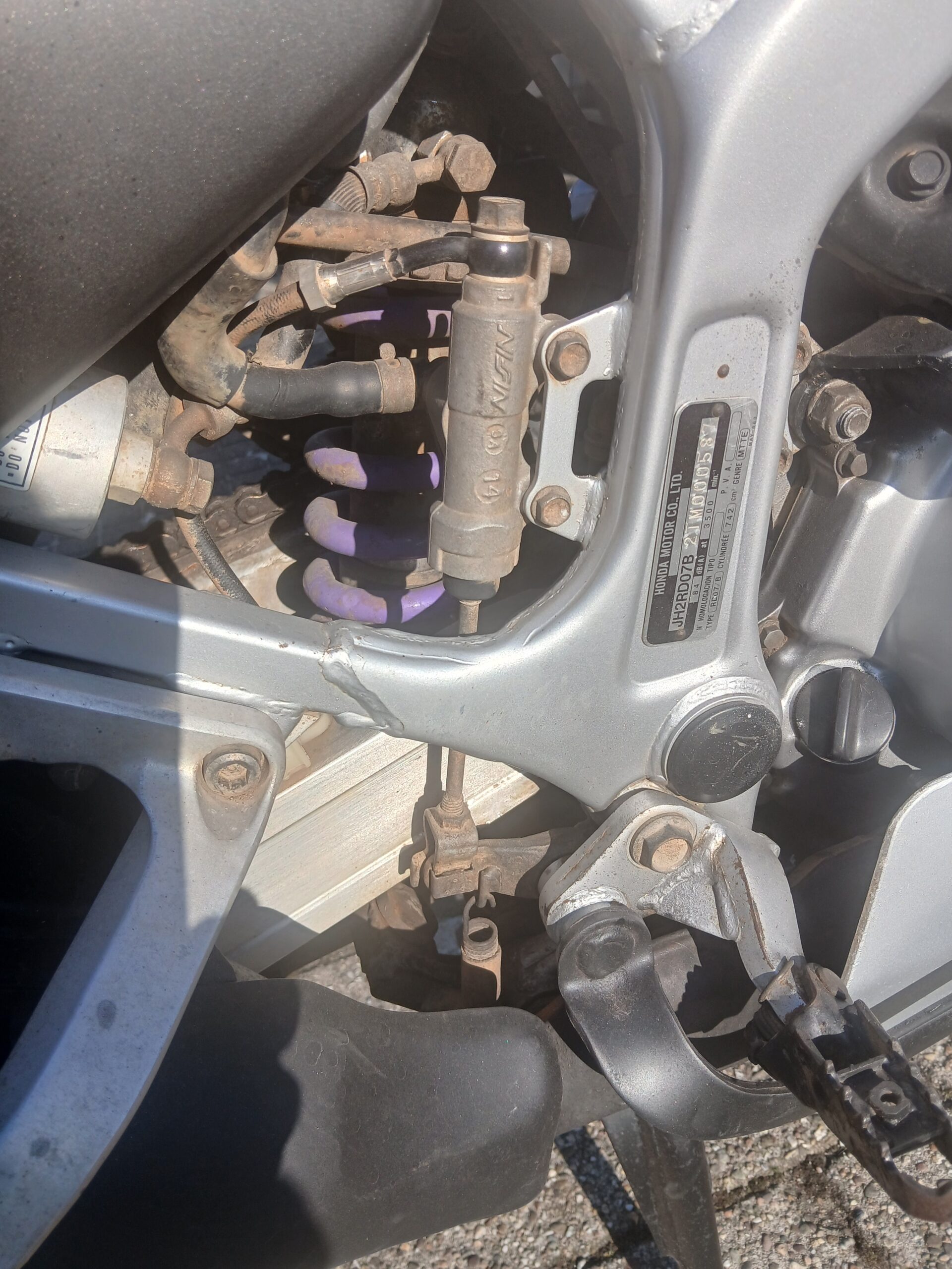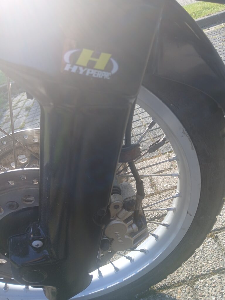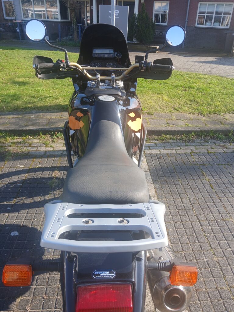 De motor is netjes en compleet uitgevoerd met nuttige accessoires zoals. een donker getinte kuipruit, verbrede voetsteunen, Hyperpro vering voor en achter, een 12v aansluiting op het dashboard, zwarte valbeugels (dit zijn de mooiste en beste naar mijn mening), een middenbok en stalen remleidingen.