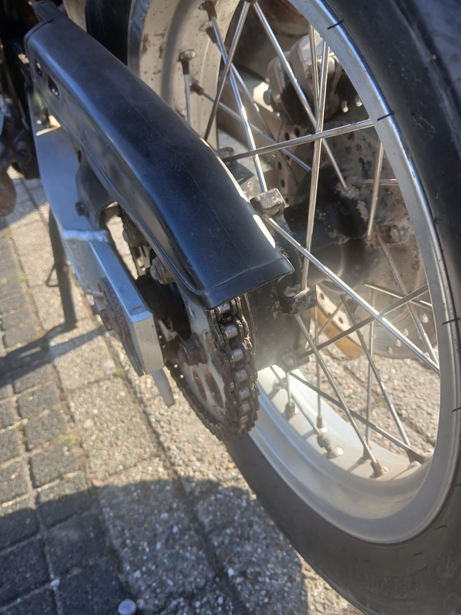 De motor is zeer netjes en alle slijtdelen verkeren in goede staat. De voorband wordt nog vervangen.
